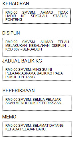 Medium yang cukup pantas dan cepat ke telefon bimbit ibubapa/penjaga, bagi memastikan setiap pelajar dapat dipantau 365 hari setiap tahun oleh ibubapa/penjaga.